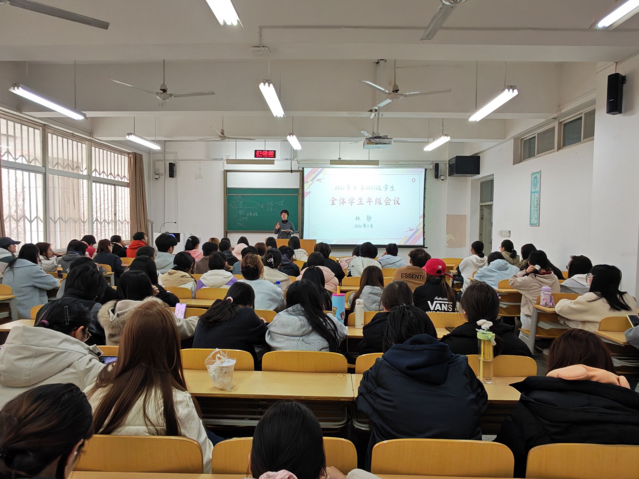 3月12日,人文社会科学学院2025级全体学生在D184教室召开春季学期年级大会,会议由辅导员杜静老师主持,全体学生参会。本次大会旨在进一步加强学风建设,规范日常管理,强化学生安全意识,明确新学期学习目标与纪律要求。会上,首先杜静通报了所有人上学期成绩分析结果,动员大家查漏补缺,以积极态度规划好本学期学习,同时强调补考的同学务必认真复习,诚信参加补考考试。在日常管理方面,她重申请假流程与课堂考勤纪律,要求...