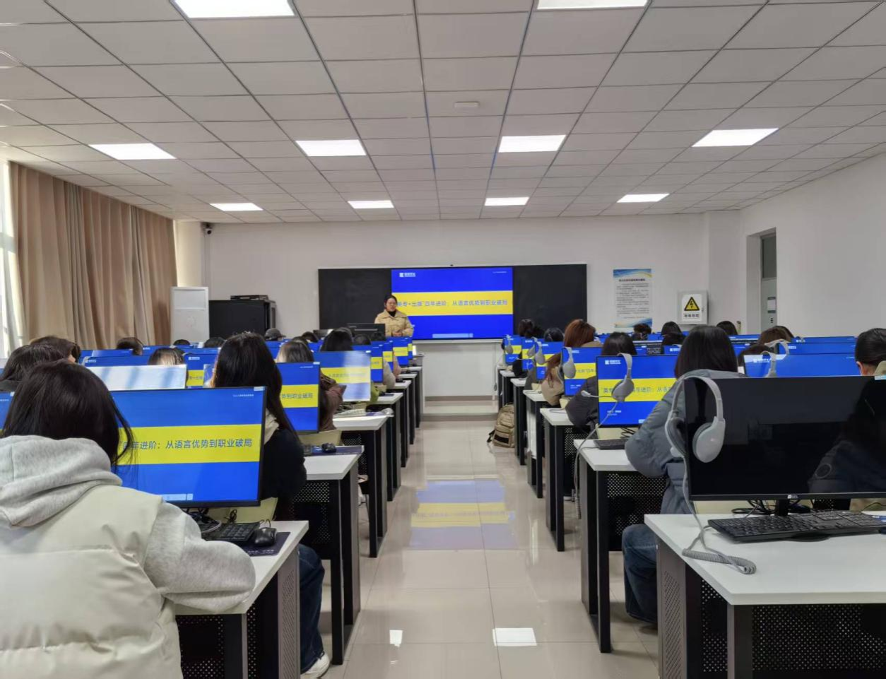 此次活动由英语系主任,“三全育人”导师团导师张睿主持,西安工程大学2015届毕业生、外国语言学及应用语言学专业硕士、英语专业编辑出版实习基地陕西巨微图书文化传播有限公司英语命题研究组专家成员薄艳丽主讲,2025级英语专业全体学生参加。