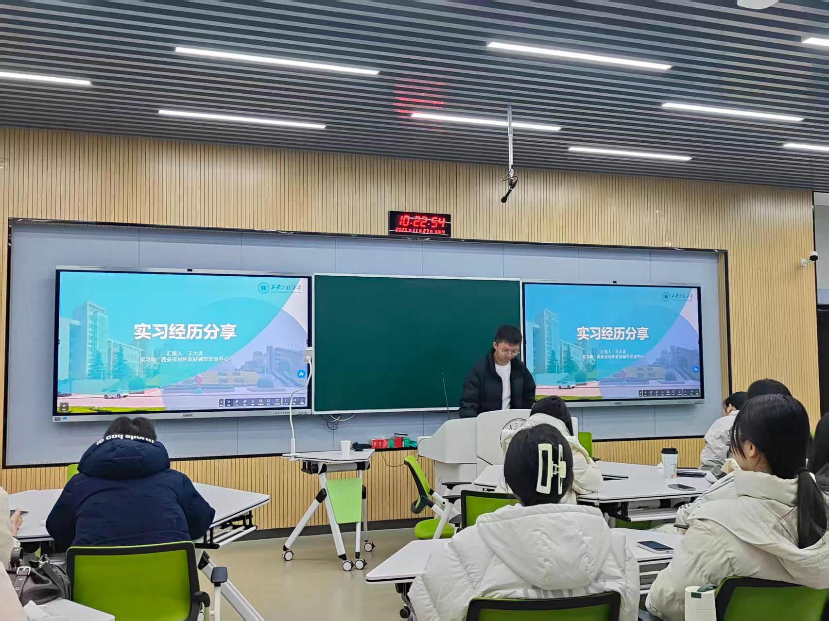 在西安市委外办、北京如文思实习的23级翻硕优秀学生代表王大龙、李梦丹同学分别进行实习分享。王大龙回顾了自己在实习期间的工作体验,具体分享了在实际岗位中遇到的挑战、解决方案以及收获,并指出实习不仅提升了专业技能,更增强了团队合作与时间管理能力,为今后职业道路打下了坚实基础。李梦丹则从时间管理和职业素养角度出发,结合自身经验,分享了实习中的心得体会。她重点讲述了沟通技巧的重要性,提出了有效管理时间和提升思维认知等实用建议,旨在帮助学弟学妹们更好准备实习阶段的各项工作。
