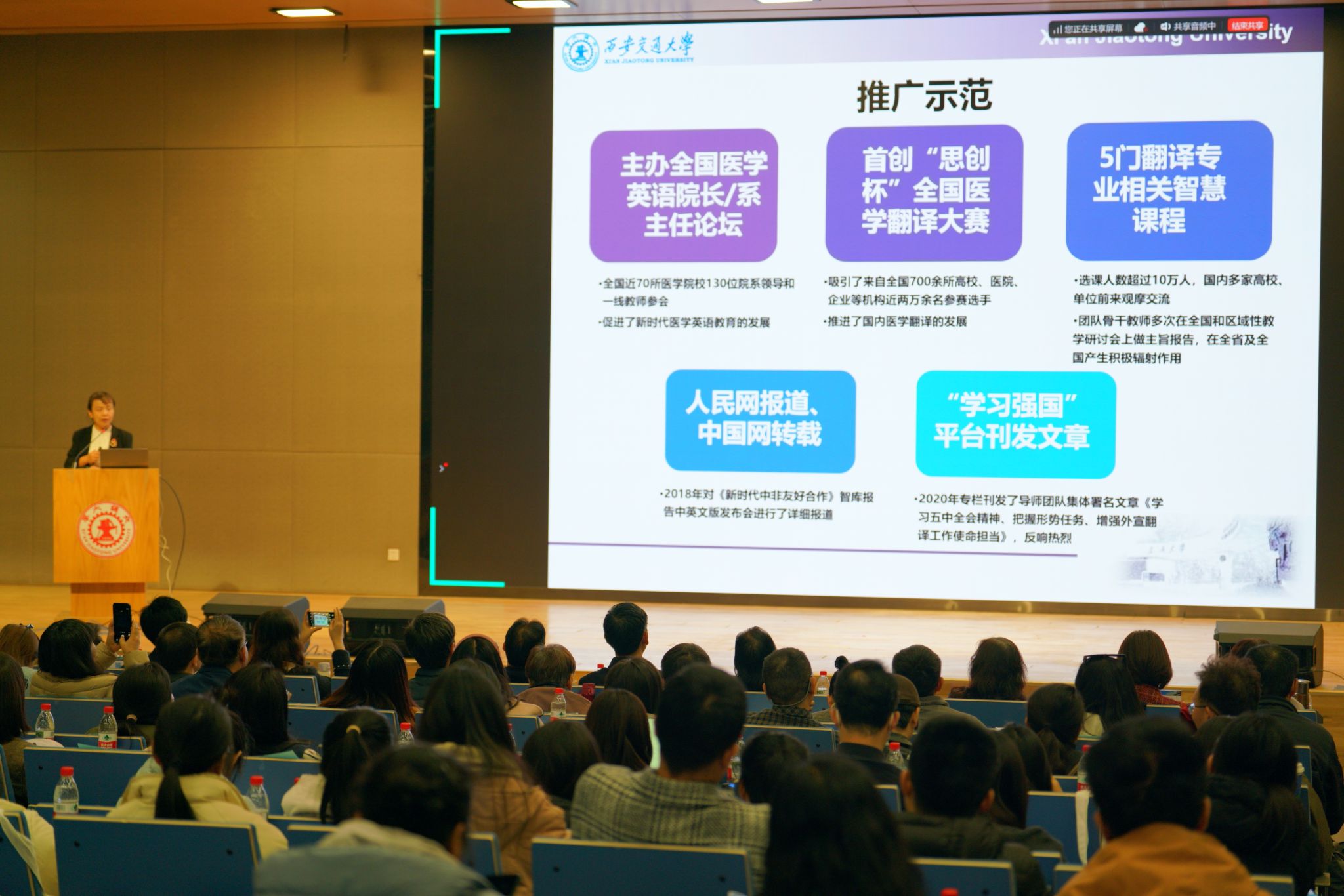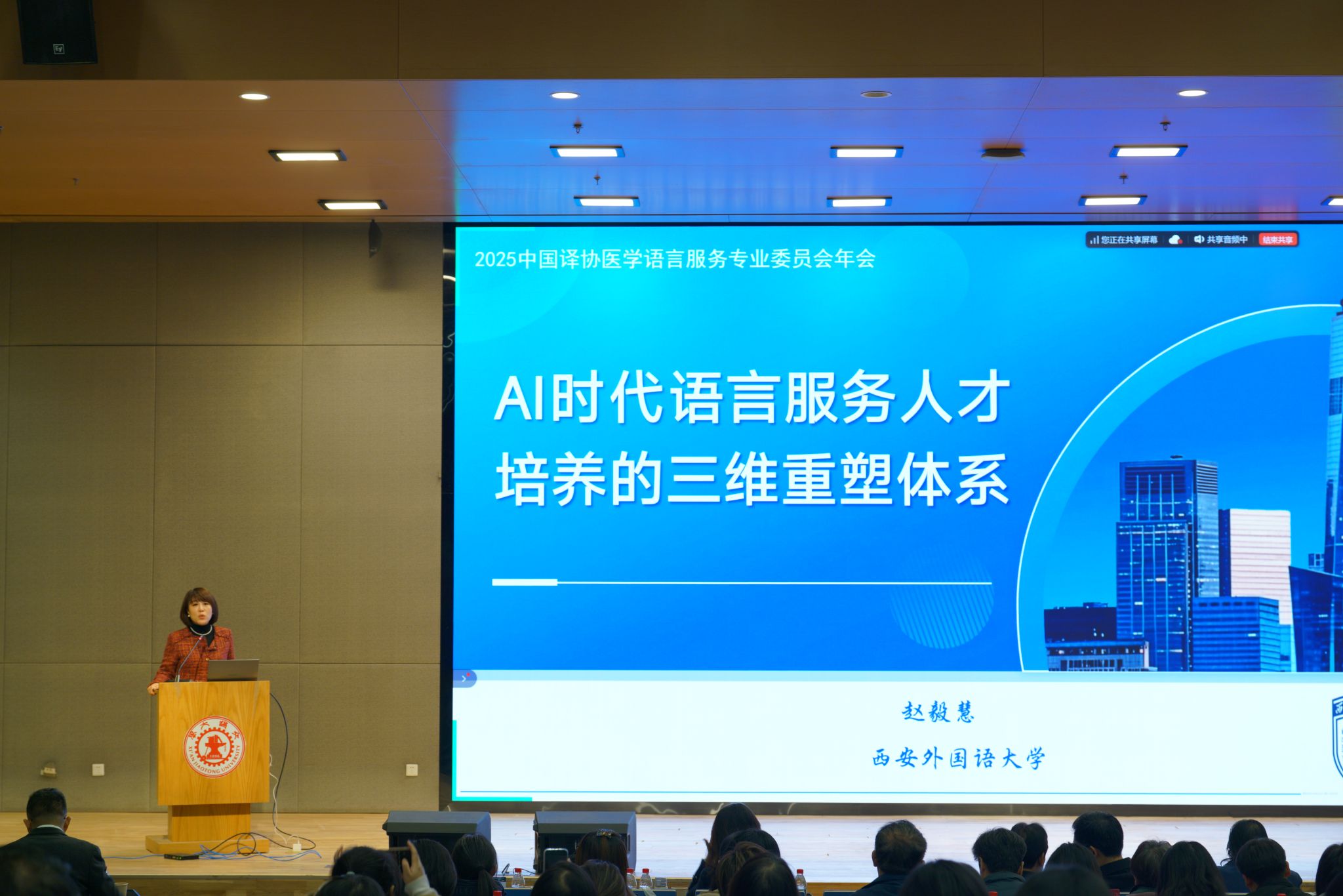 2025年12月6日,中国翻译协会医学语言服务专业委员会年会在西安交通大学创新港校区召开。本届年会以“跨越语言,传播健康”为主题,由中国翻译协会医学语言服务专业委员会与西安交通大学联合主办,吸引了国内高校、企业等来自翻译、医学、教育等多领域的专家学者。我院教师屈亚媛及MTI学生代表应邀参会,与业界同仁共同探讨人工智能时代医学语言服务面临的挑战与机遇,共商行业未来。