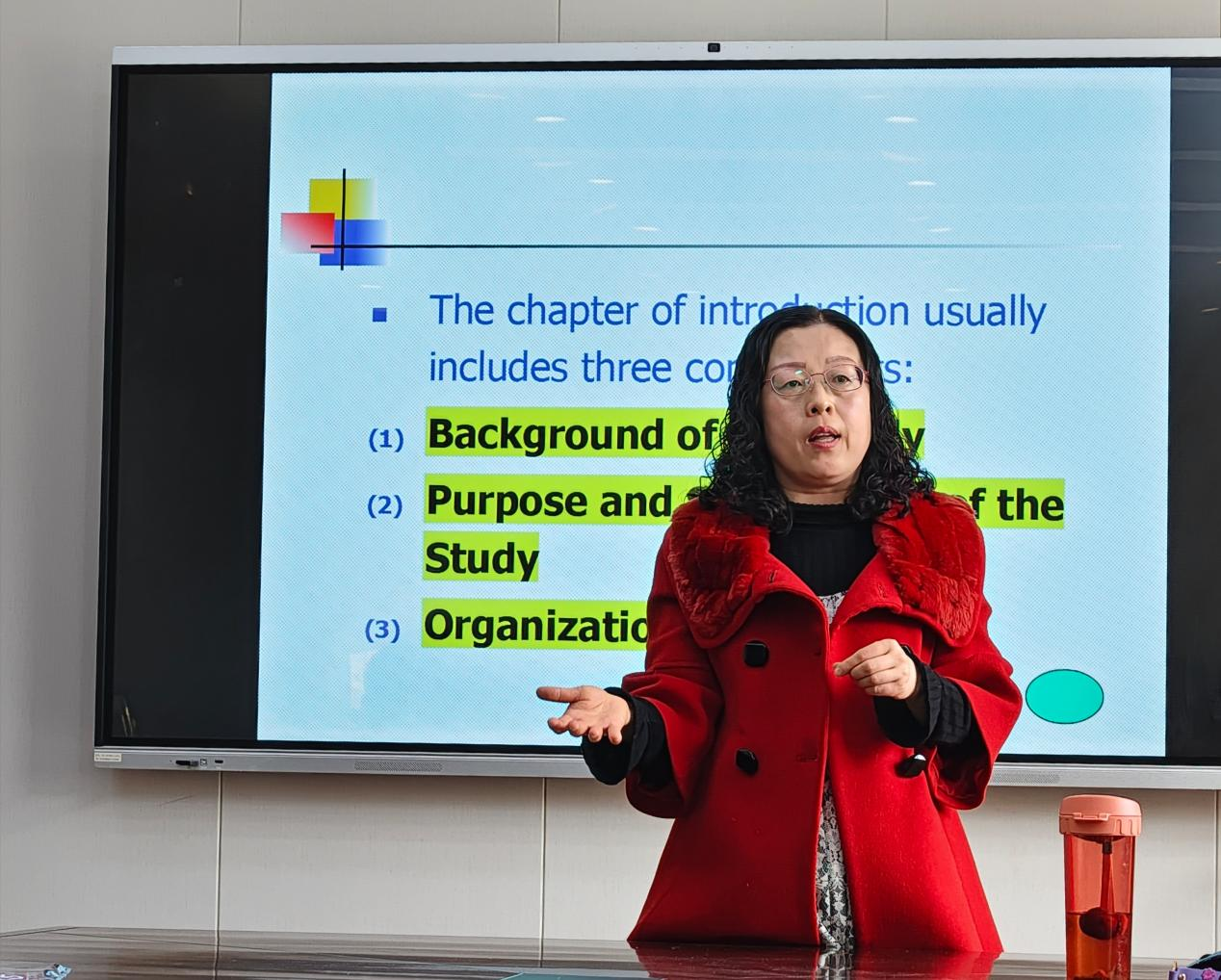 在论文结构讲解环节,王晓静教授从摘要、引言、文献综述、方法论、结果与讨论、结论等方面逐一展开。她详细梳理了各部分的撰写要点,强调摘要需中英文对应,文献综述应关注已有成果与待解决问题,方法论要明确研究问题与研究工具,结果与讨论部分应注重图表呈现与研究发现的意义分析。此外,她还就参考文献的规范引用、致谢的写作顺序等细节做出说明,提醒学生注重学术规范与逻辑严谨。整场会议内容详实、重点突出,既有宏观框架的指导,又有细节规范的提醒。现场学生认真记录,积极互动,纷纷表示对毕业论文的写作流程和学术要求有了更清晰的认识。