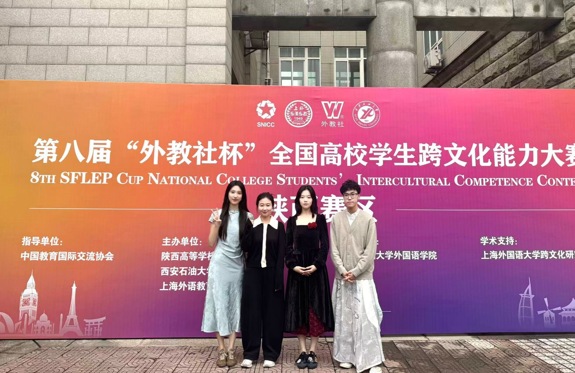 2025年10月18日至19日,第八届“外教社杯”全国高校学生跨文化能力大赛(陕西赛区)在西安石油大学圆满落幕。经过激烈角逐,由我校人文社会科学学院英语专业陈晓文、管理学院国际经济与贸易专业刘昱言、新媒体艺术学院播音与主持艺术专业王泳翔三名同学组成的代表队,在人文学院崔昕、曹晓英老师的悉心指导下,凭借出色的表现脱颖而出,最终以陕西赛区第六名的优异成绩荣获省级一等奖。