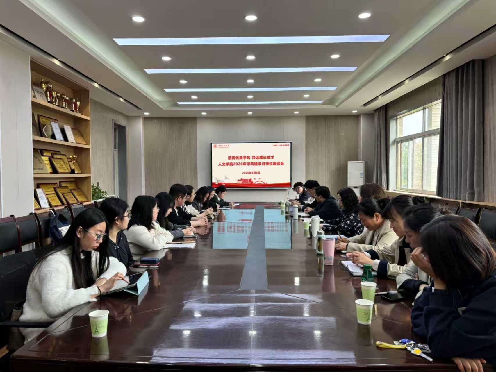 为深入了解学生需求,强化优良学风建设,4月8日,人文社会科学学院在人文楼召开“涵育优良学风 共话成长成才”2026年学风建设月师生座谈会。学院院长陈莉霞、党委书记李喜峰等班子成员,本科各专业负责人、全体辅导员及各年级学生代表参加会议,会议由学工办主任杜静主持。