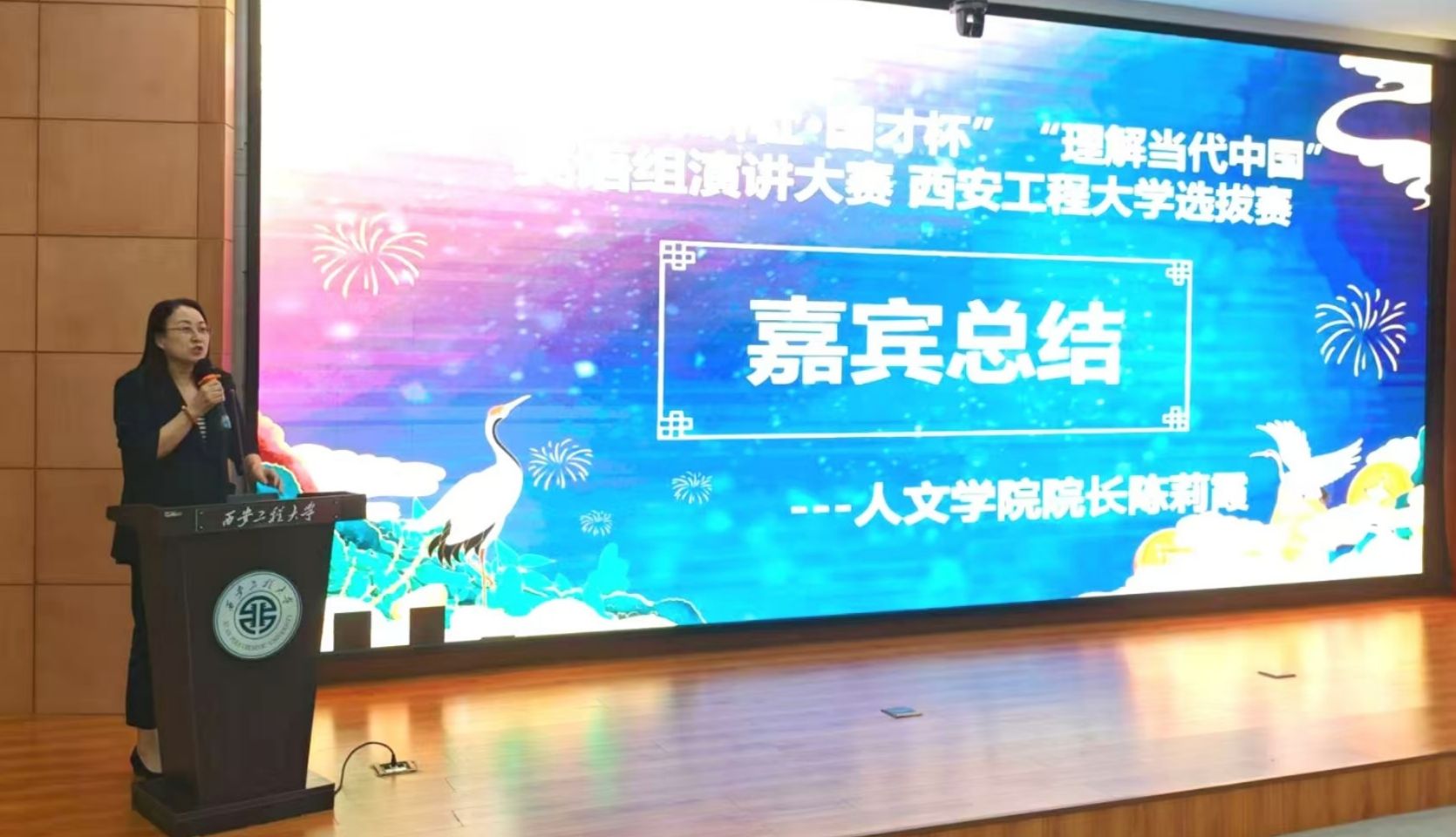 大赛最后,人文学院院长陈莉霞为本次大赛做总结讲话。她指出本次大赛是学校积极推动英语教育、提升学生英语演讲能力和跨文化思辨意识的生动体现。以大赛为平台,展现可信、可爱、可敬的中国形象,展现积极向上、奋斗激扬的中国青年力量。我校将以此次大赛为契机,继续加强英语教学改革,提高用英语讲好中国故事、传播好中国声音的能力并推动我校英语演讲教学改革与创新,提升我校学生外语能力、跨文化能力、思辨能力、创新能力等综合素养,为培养适应高水平对外开放需求的具有全球胜任力的高素质人才做出贡献。