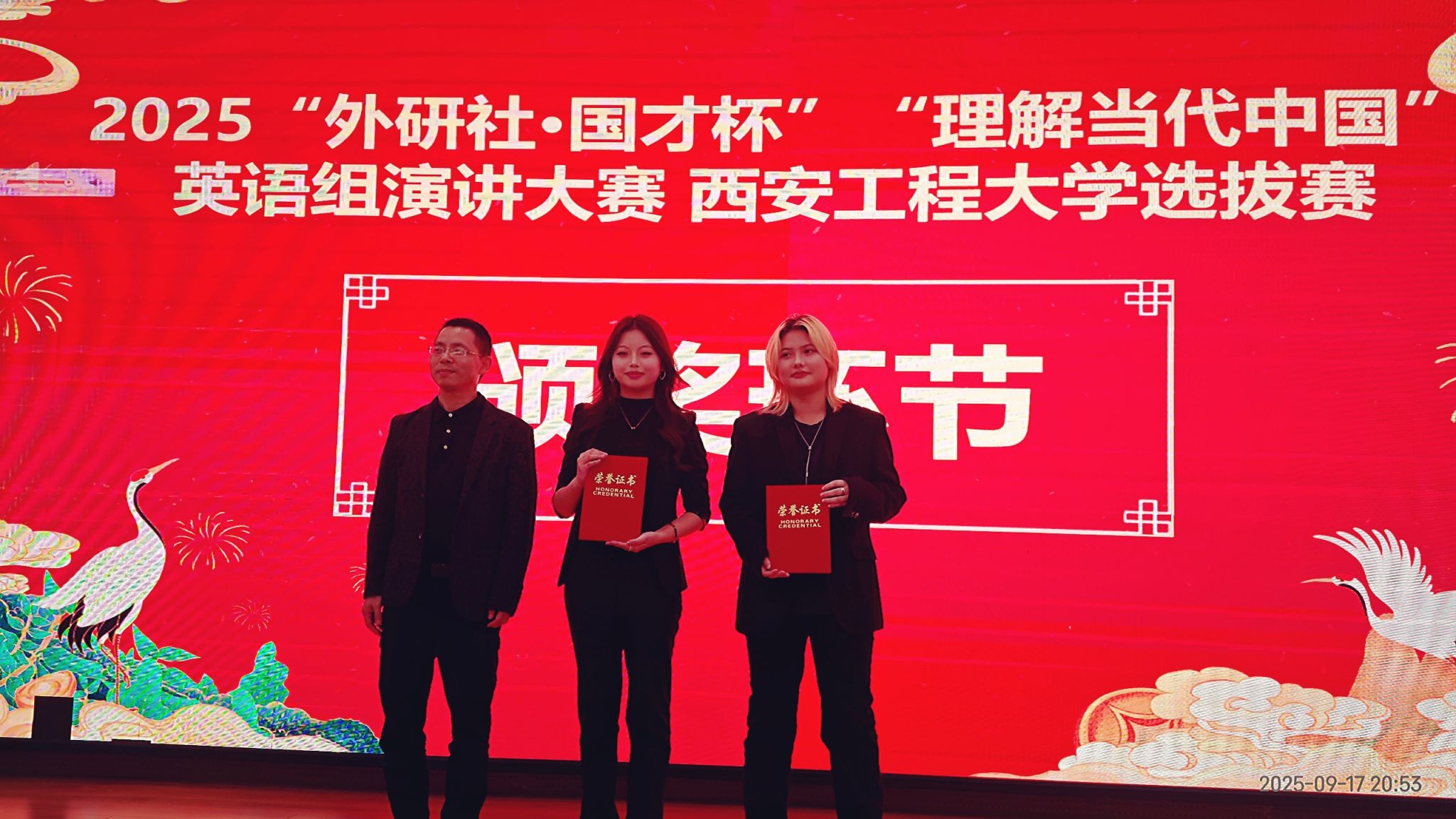 经过激烈的角逐,来自服装与艺术设计学院(中外合作办学)的林杨忻和熊斯遥同学脱颖而出,荣获金奖,将代表西安工程大学参加陕西省比赛;人文社会科学学院南曦瑶、宁锦潞、韩晓谊,电子信息学院盛洁和管理学院刘昱言同学获得银奖;服装与艺术设计学院杨舒婷和人文社会科学学院陈晓文同学获得铜奖。