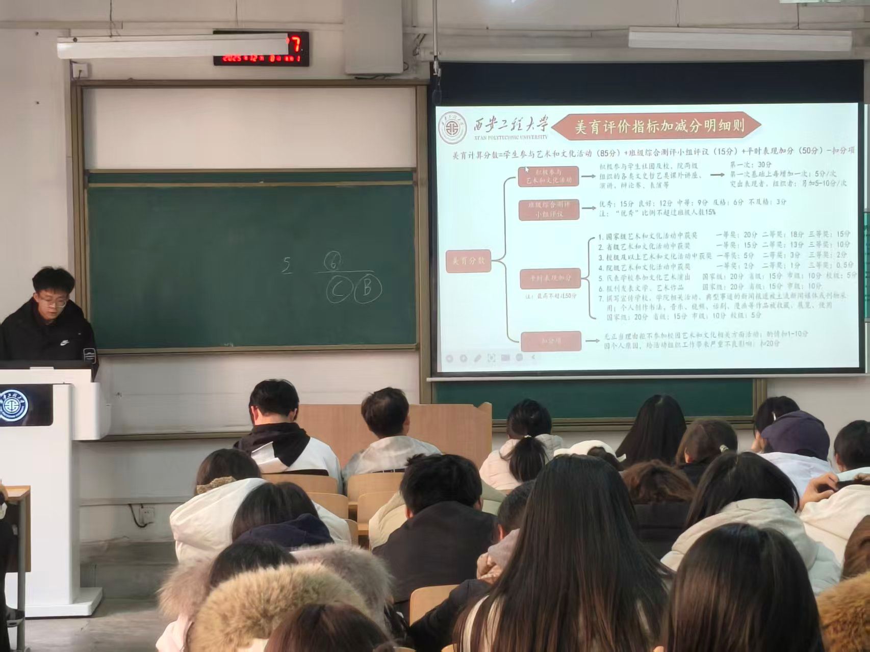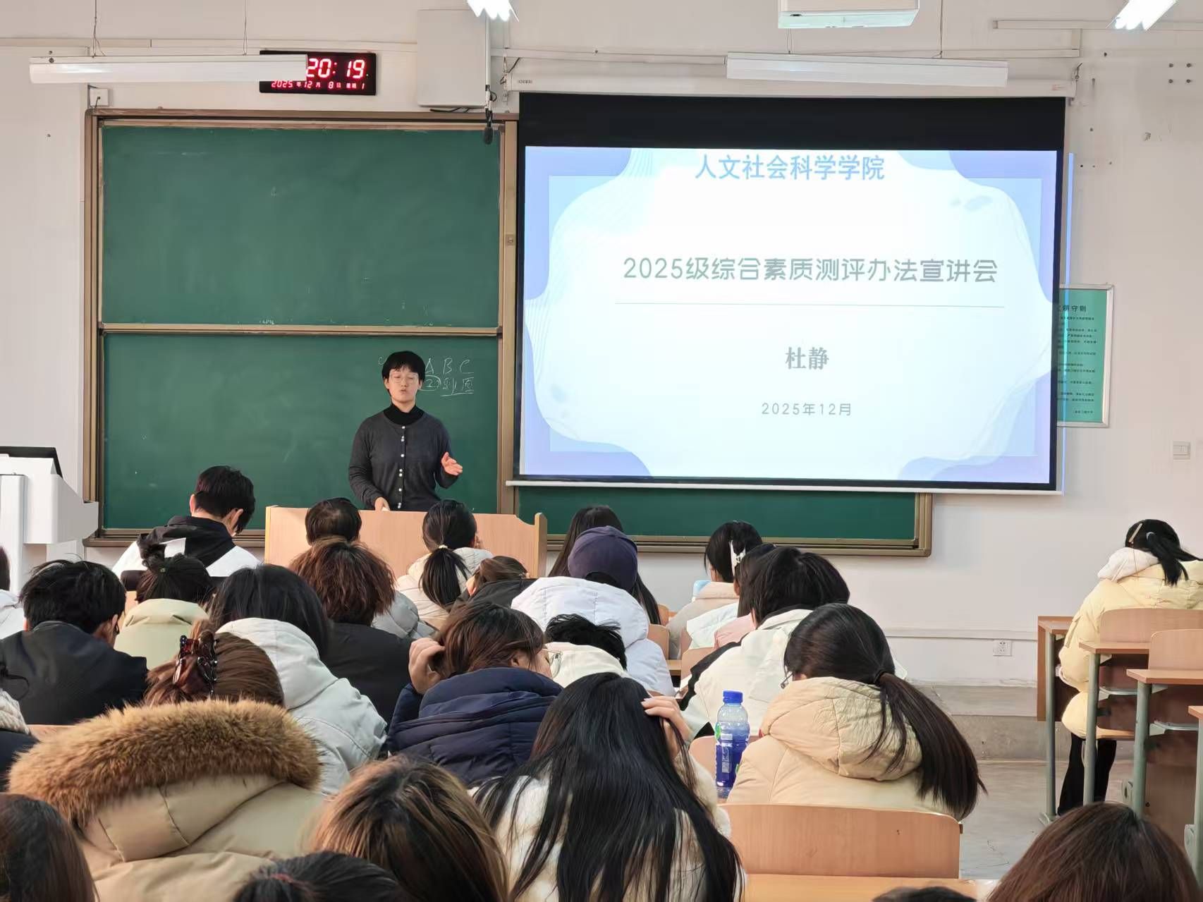 为帮助2025级本科生深入理解学校新修订的《本科生综合素质测评办法》(以下简称《办法》),推动学生全面成长与发展,人文学院于12月8日组织召开专题宣讲年级大会。本次会议针对修订后的《办法》进行了系统解读与说明,确保新政策准确传达至每一位相关学生。